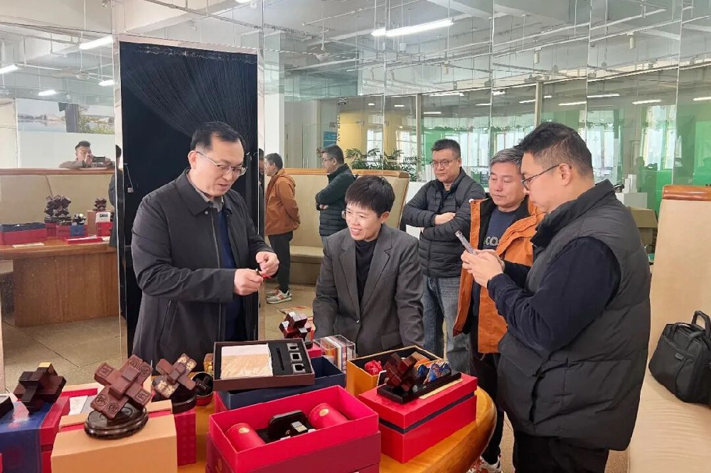 近日,枣庄科技职业学院建筑系师生一行走进圣匠鲁班文创生产基地,开展实践学习交流活动。圣匠鲁班文创工作人员热情接待,带领师生参观生产车间,讲解非遗鲁班锁的生产流程,让师生们近距离感受非遗匠心与现代工业的碰撞。活动期间,工作人员首先向师生们介绍了圣匠鲁班生产基地的整体布局、车间职能及鲁班锁的生产规模,让招商加盟丨江苏客户团队考察圣匠鲁班文创,携手传承非遗鲁班锁的千年智慧